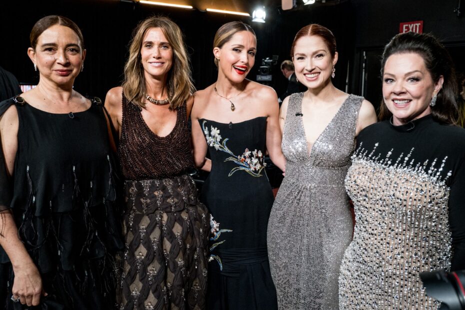 Bridesmaids stars Maya Rudolph, Kristen Wiig, Rose Byrne, Ellie Kemper and Melissa McCarthy reunite at 2026 Oscars