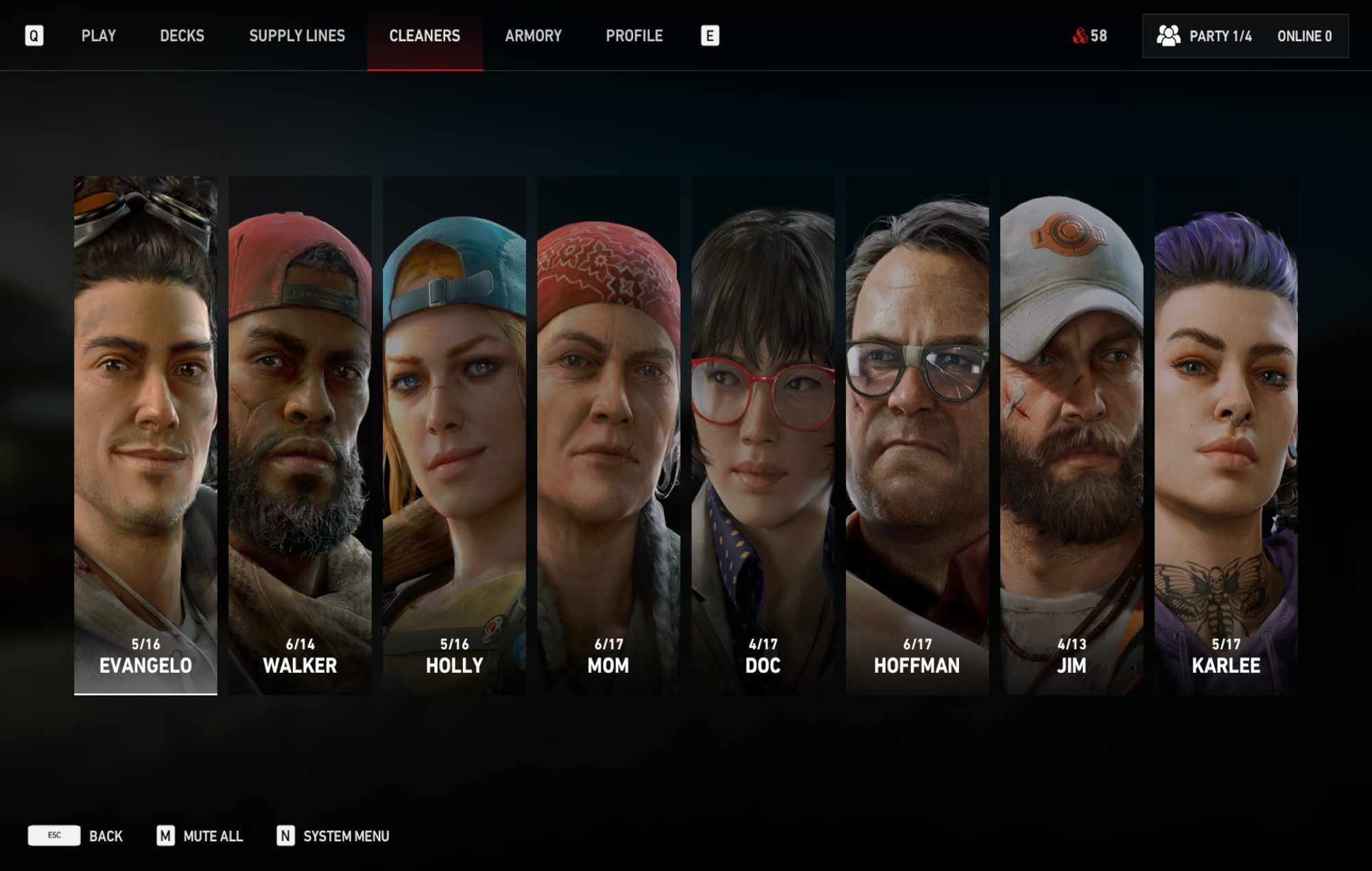 You now have access to Doc, who can provide free healing. Hoffman, who creates free ammo. Jim gets improved damage when stacking headshots, and Karlee can sense mutations nearby.